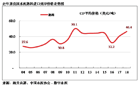 從我國海關(guān)總署的貿(mào)易額來看,進口水泥熟料價格從2016年開始已經(jīng)連續(xù)三年走高,2018年平均的進口到岸價達到46.4美金,從2018年的月度分析來看,3月份最低40美金,12月份最高達到50美金。