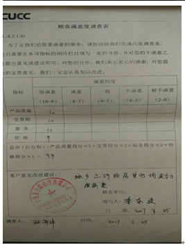 2、致力提升客戶滿意度。為更客觀評價(jià)公司為客戶提供的的產(chǎn)品和服務(wù)水平,發(fā)現(xiàn)自身存在的不足,推動(dòng)業(yè)務(wù)改善,公司采取各種措施提升客戶滿意度。經(jīng)調(diào)查了解,與當(dāng)?shù)仄渌嗥髽I(yè)相比,我司在客戶中有良好的口碑。